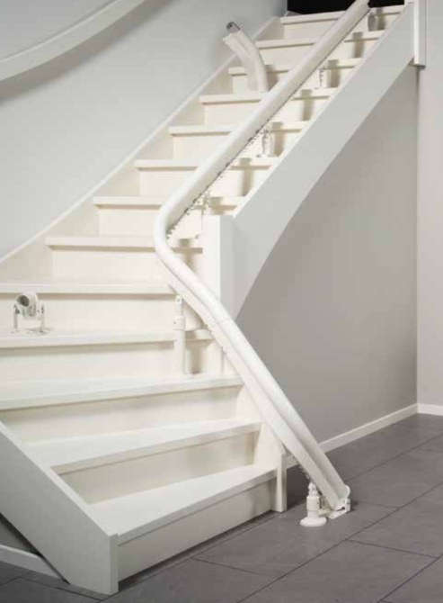 Our newest stairlift is built from several pieces and by the unique couplings this is not at the expense of ride quality. We have many different rail parts so that we can fit the stairlift on most staircases, without taking up too much space.
